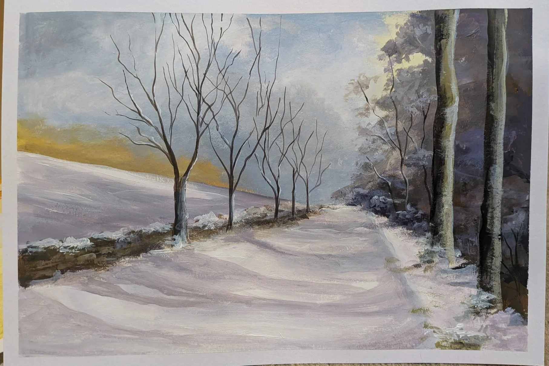 Come and paint a winter scene with Nathalie Beauvillain Scott, a local mural and portrait artist. The masterpieces will make a perfect Xmas card!